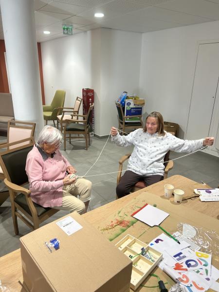 Création de décorations en laine, pour habiller notre établissement.