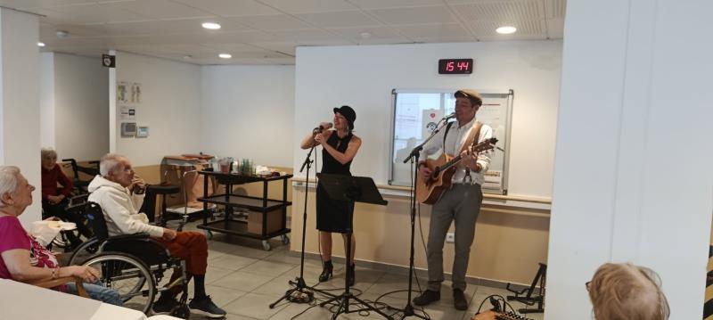 Résidence Le Blanc Galet > Actualités > concert du 25 décembre concert du 25 décembre Publiée le 26/12/2025 une bonne ambiance de noël sous des reprise de musique française accompagnée a la guitare
