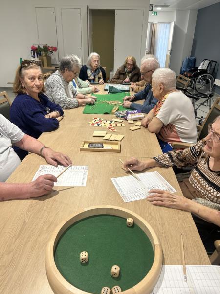 Les résidents se retrouvent dans la salle d'animation afin de partager un moment ensemble en profitant des jeux de société mis à disposition. De la belote, un scrabble, un yam's, un triomino ou encore des mikados... Il y en a pour tous les goûts.