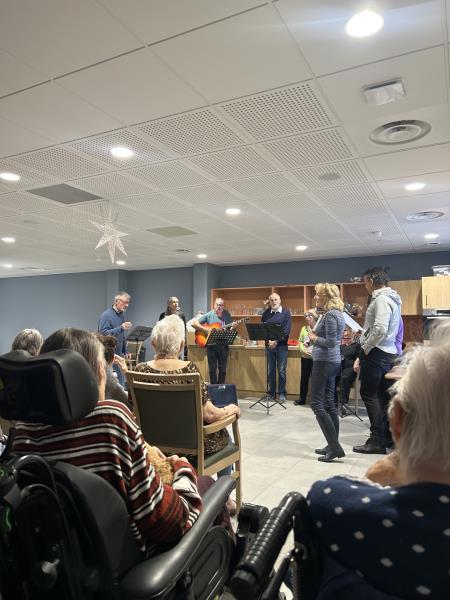 Résidence Le Blanc Galet > Actualités > la chorale fantasque la chorale fantasque Publiée le 19/12/2025 une chorale est venue chanter bénévolement plusieurs morceaux ,pour le plus grand bonheur des résident