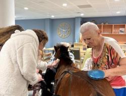 Durant l'après-midi, les résidents ont pu profiter de la présence de Tarzan le poney ainsi que du chien. L'équithérapeute a accompagné les résidents afin qu'ils puissent approcher les animaux, les caresser, les brosser et même les masser.
