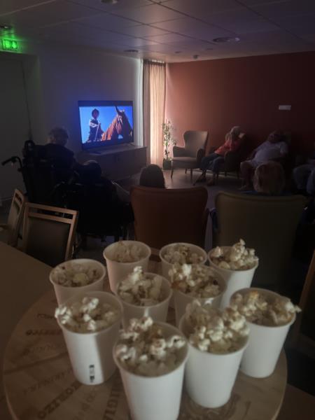 Les résidents ont pu profiter d'une après-midi autour d'un film projeté en salle d'animation. Installés confortablement, ils ont pu déguster les pop-corn et se détendre devant le film.